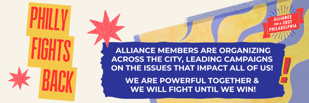 This spring, Alliance members are leading campaigns to fight for what our communities deserve and taking action to demand city leadership stand up for everyday people. We know we’re more powerful together and we’ll keep fighting for a future where all Philadelphians are safe, fed, and have the resources they need!